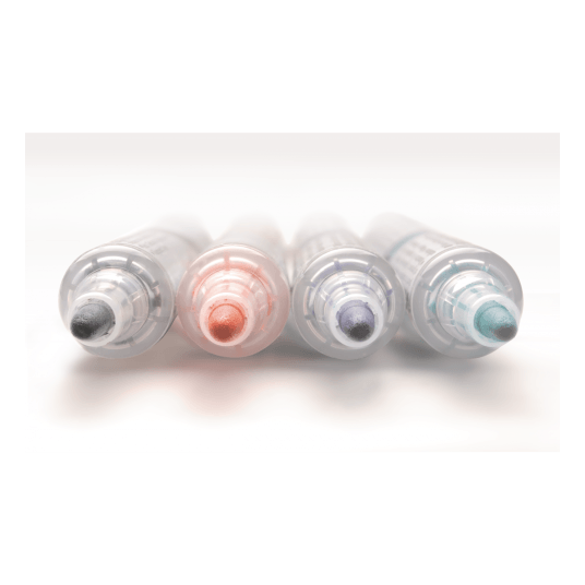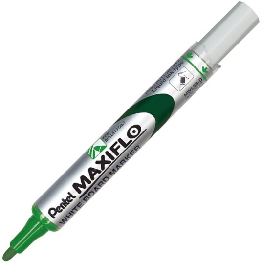 Marker do białych i ceramicznych tablic. Płynny tusz dozowany w razie konieczności nawilżenia końcówki za pomocą tłoczka (zamiast tradycyjnego sączka). Marker pisze wyrazistą linią aż do ostatniej kropli tuszu. Kilkakrotnie dłuższa linii pisania niż w standardowych markerach z sączkiem - 1200 m. Nie zawiera substancji trujących ksylenu ani toluenu. Nadaje się na papier, plastik, karton, tablice suchościeralne.