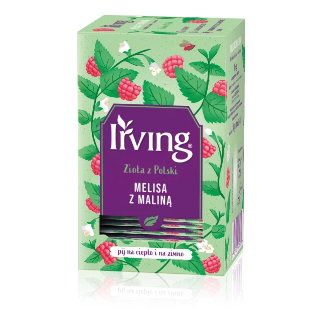 Herbatka ziołowo-owocowa Irving łączy kojące działanie melisy z naturalną słodyczą malin. To idealny napar na odprężenie i poprawę samopoczucia, szczególnie polecany przy bezsenności i w chwilach zmęczenia. Delikatny aromat melisy wzbogacony malinową nutą przywołuje letnie wspomnienia i pozwala na chwilę relaksu każdego dnia.