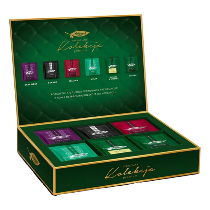 Zestaw zielony HERBAPOL to propozycja stworzona z myślą o osobach, które lubią zmienność smaków i sięgają zarówno po klasyczne herbaty, jak i aromatyczne kompozycje owocowe oraz ziołowe. Elegancka forma sprawia, że zestaw świetnie sprawdza się jako upominek, a różnorodność pozwala dobrać napar do nastroju i okazji.