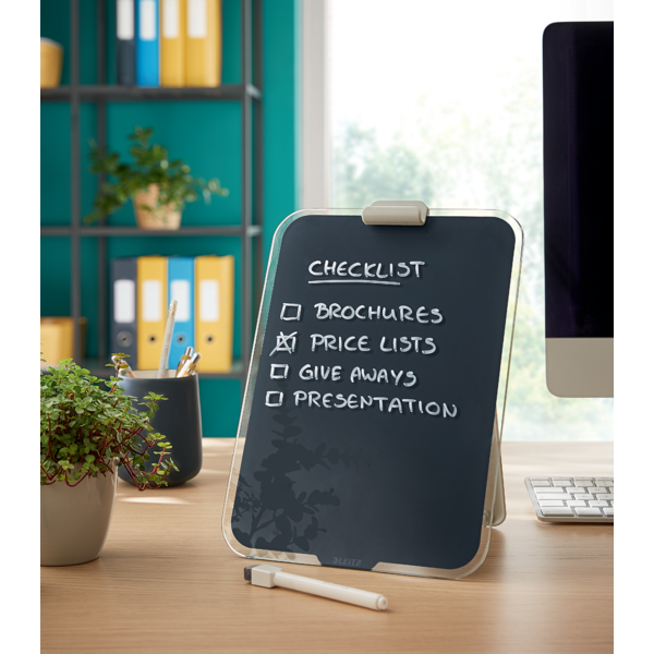 - Szklana tablica suchościeralna jest idealna robienia notatek lub zapisywania przypomnień