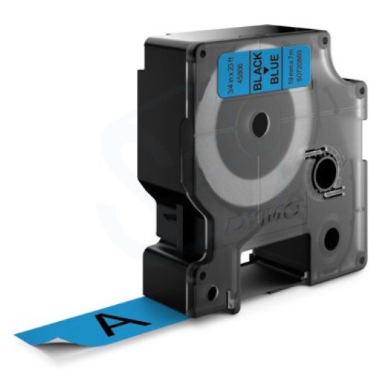 - Czarny nadruk na niebieskim, 19 mm x 7 m, samoprzylepne etykiety do drukarek etykiet LabelManager