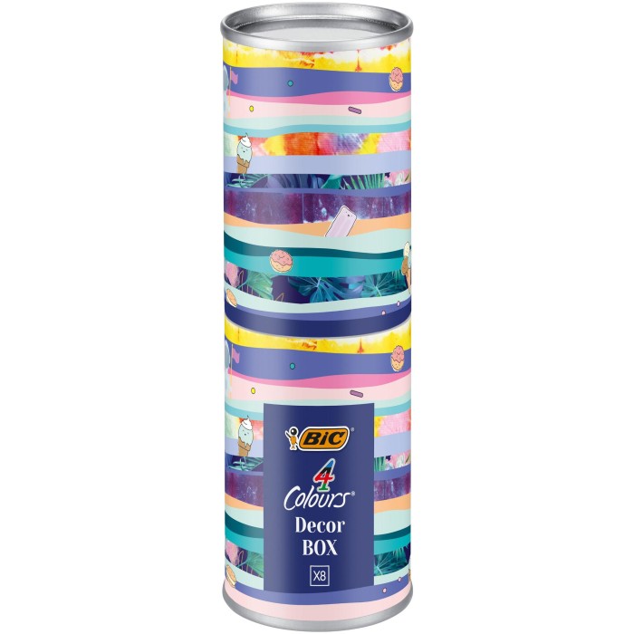 DŁUGOPISY BIC 4 COLOURS DECOR W METALOWYM OPAKOWANIU (8 SZTUK)