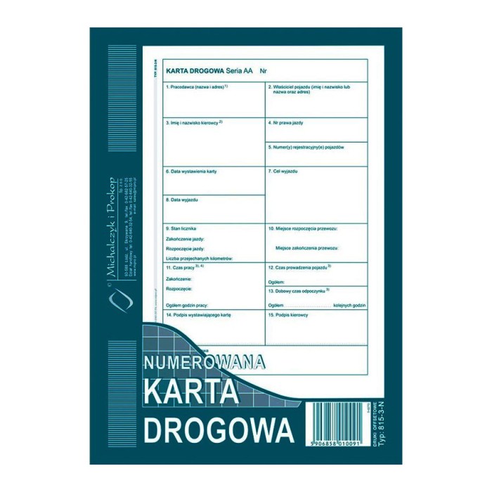 KARTA DROGOWA (NUMEROWANA)