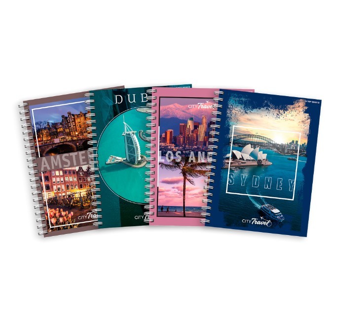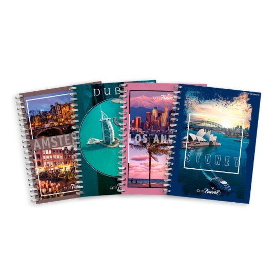 Kołozeszyty z kolekcji City prezentują na swych okładkach najchętniej odwiedzane miasta Świata. Zeszyt spodoba się każdemu podróżnikowi i nie tylko. Kartonowa, laminowana okładka wraz z dobraną do zdjęć kolorystyką idealnie sie komponuje. Użyty w zeszycie papier o gramaturze 70 g/m2 sprawdzi się w szkolnym uzytkowaniu. Spirala pozwala na ułożenie kołozeszytu idealnie płasko na biurku jak również otwarcie go o 360 stopni.