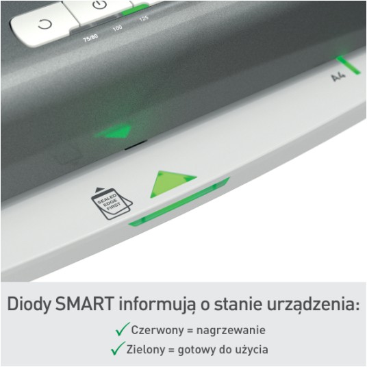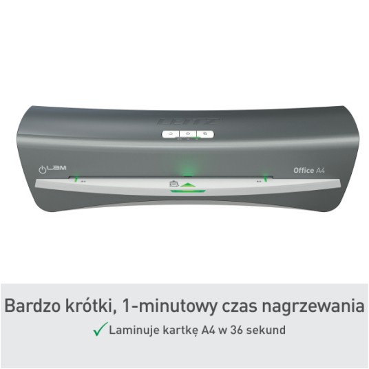 ✅ Bezproblemowa, wysokiej jakości laminacja, bez skomplikowanych ustawień ✅Bardzo krótki czas nagrzewania sprawia, że jest to idealne urządzenie do laminacji niewielkich ilości dokumentów ✅Stylowe wzornictwo pasujące do każdego nowoczesnego biura - nieużywany zajmuje niewiele miejsca podczas przechowywania ✅Niskie zużycie energii, wyłącza się automatycznie po 30 min. nieużywania ✅Odpowiedni dla folii o grubości od 80 do 125 mikronów ✅Laminacja jednego dokumentu o grubości 80 mikronów zajmuje ok. 45 sekund ✅Lampka LED i sygnał dźwiękowy informujące o gotowości do pracy ✅Zawiera gratisowy pakiet folii na start ✅2 lata gwarancji, certyfikaty GS, TUV i CE ✅Rekomendowane jest stosowanie folii Leitz UDT