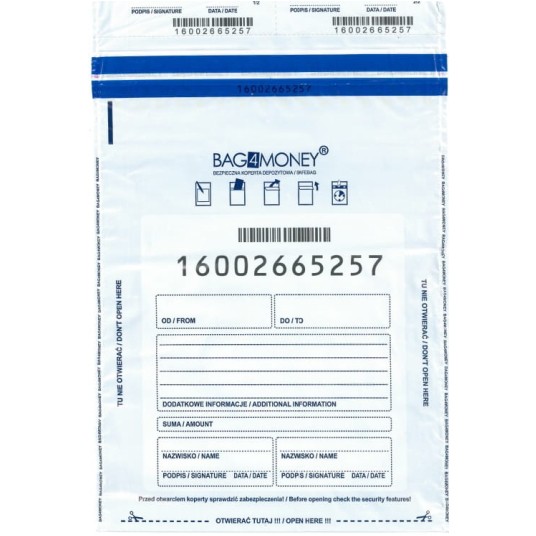 Profesjonalne koperty depozytowe w formacie B4, wykonane z wytrzymałej, trójwarstwowej folii LDPE. Przeznaczone do bezpiecznego transportu dokumentów, gotówki lub innych cennych przedmiotów. Dzięki zaawansowanym zabezpieczeniom minimalizują ryzyko manipulacji i zapewniają kontrolę nad przesyłką.