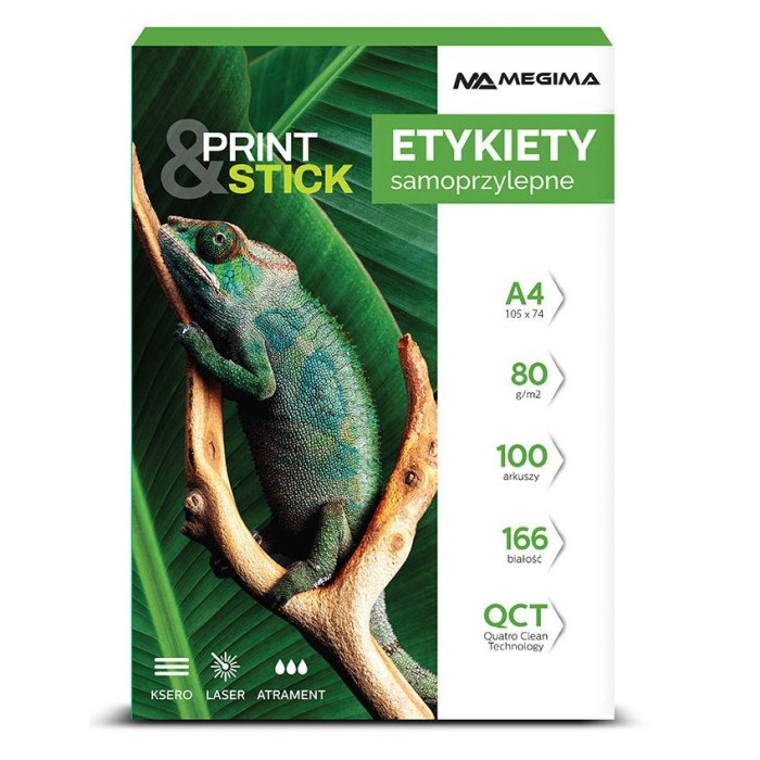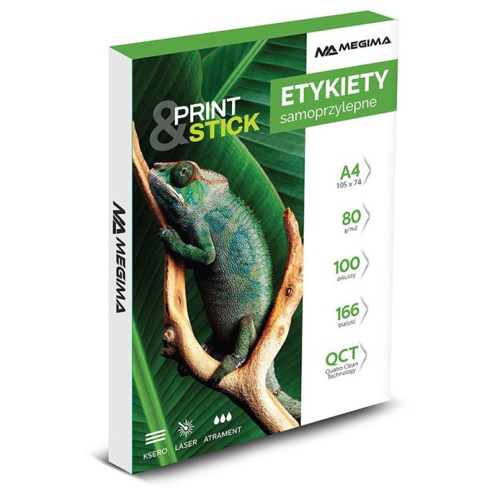 ETYKIETY SAMOPRZYLEPNE A4 MEGIMA 105 x 74 mm (PO 8 ETYKIET NA 100 ARKUSZACH)