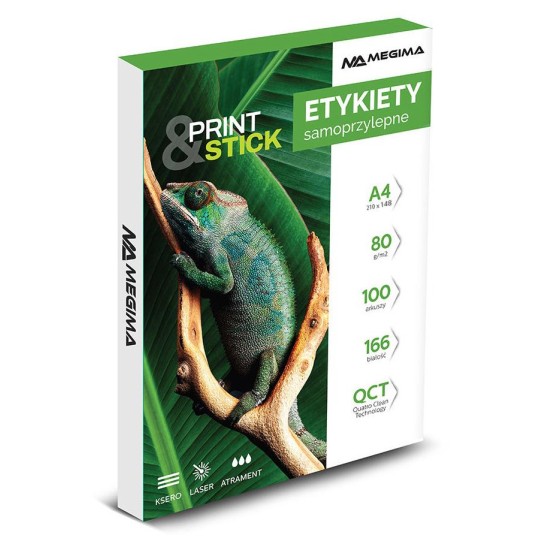 ETYKIETY SAMOPRZYLEPNE A4 MEGIMA 210 x 148 mm (PO 2 ETYKIETY NA 100 ARKUSZACH)