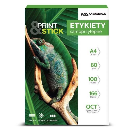 ETYKIETY SAMOPRZYLEPNE A4 MEGIMA 70 x 37 mm (PO 24 ETYKIETY NA 100 ARKUSZACH)