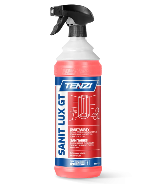 TENZI SANIT LUX GT to profesjonalny preparat przeznaczony do bieżącego oraz gruntownego czyszczenia powierzchni sanitarnych. Produkt jest gotowy do użycia i dzięki pianotwórczej formule skutecznie usuwa zabrudzenia, jednocześnie zwiększając czas kontaktu środka z powierzchnią.