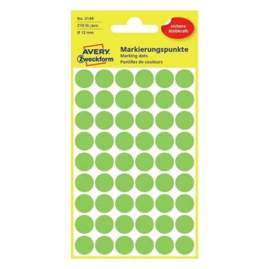 KÓŁKA AVERY 12mm TRWAŁE (270 SZTUK) (ZIELONE NEONOWE)