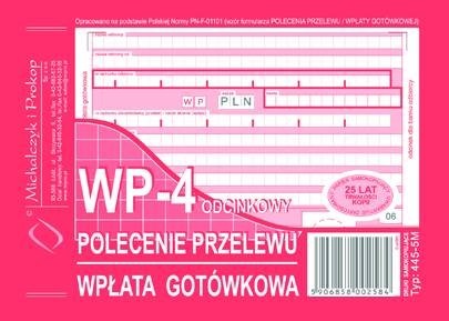 WP-4 ODCINKOWY - POLECENIE PRZELEWU - WPŁATA GOTÓWKOWA